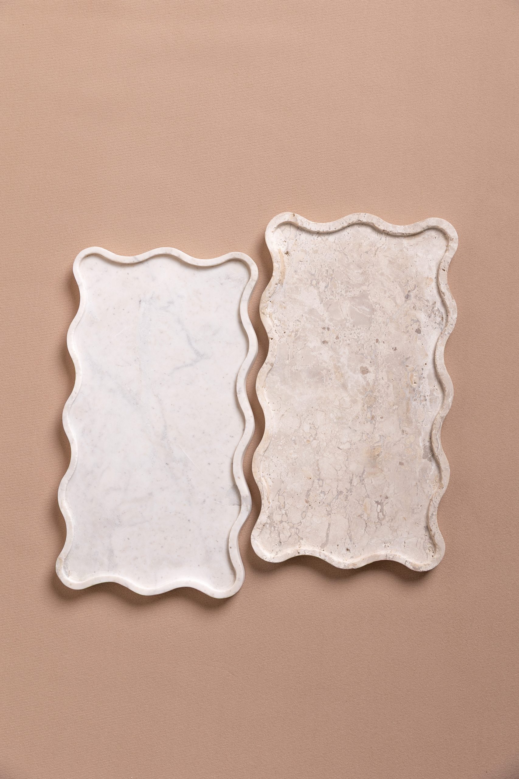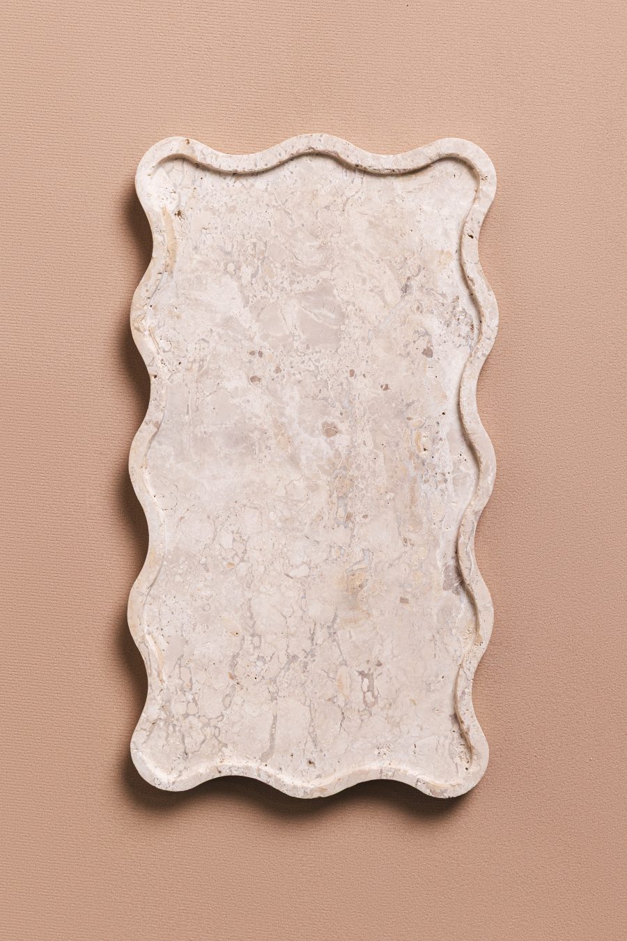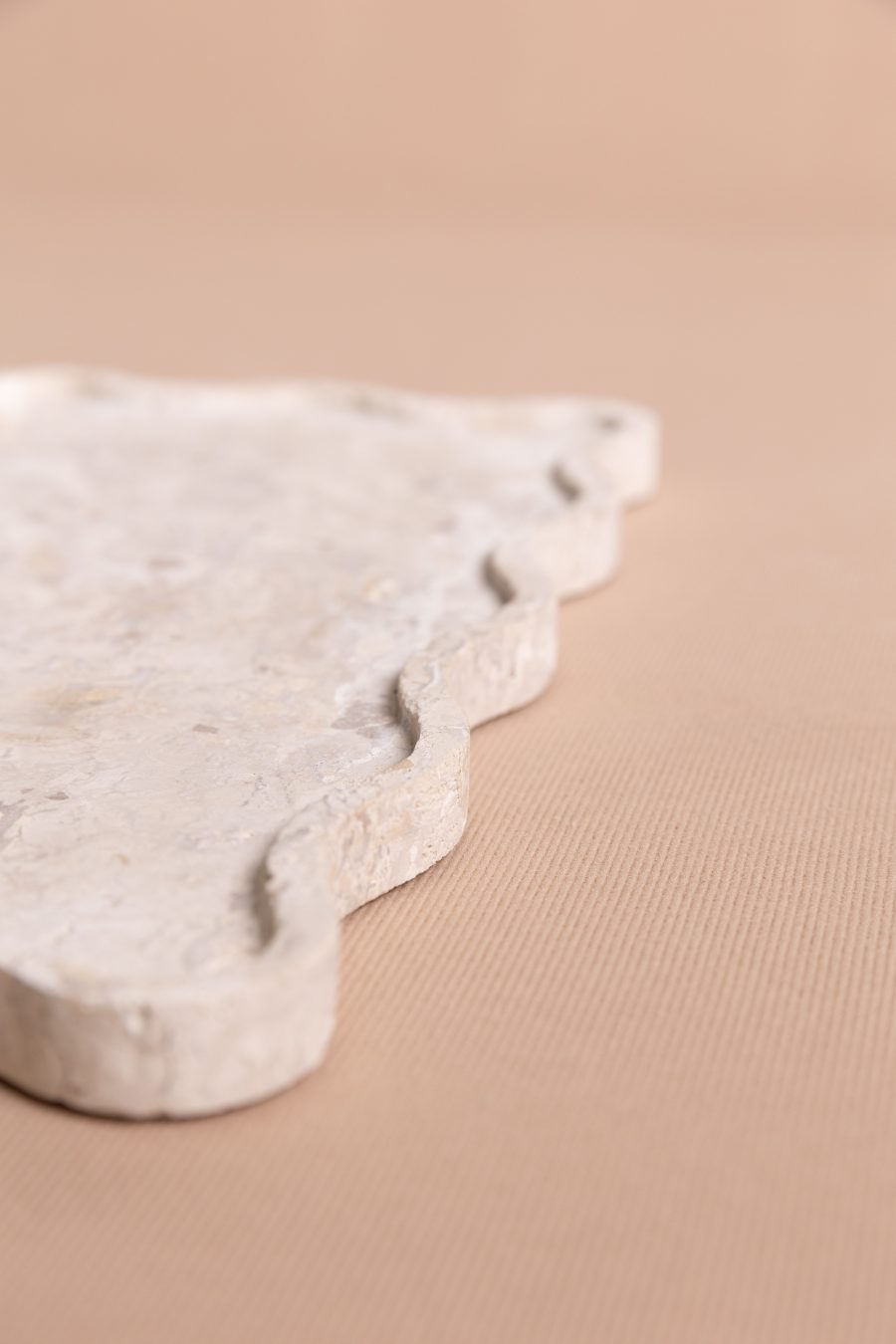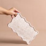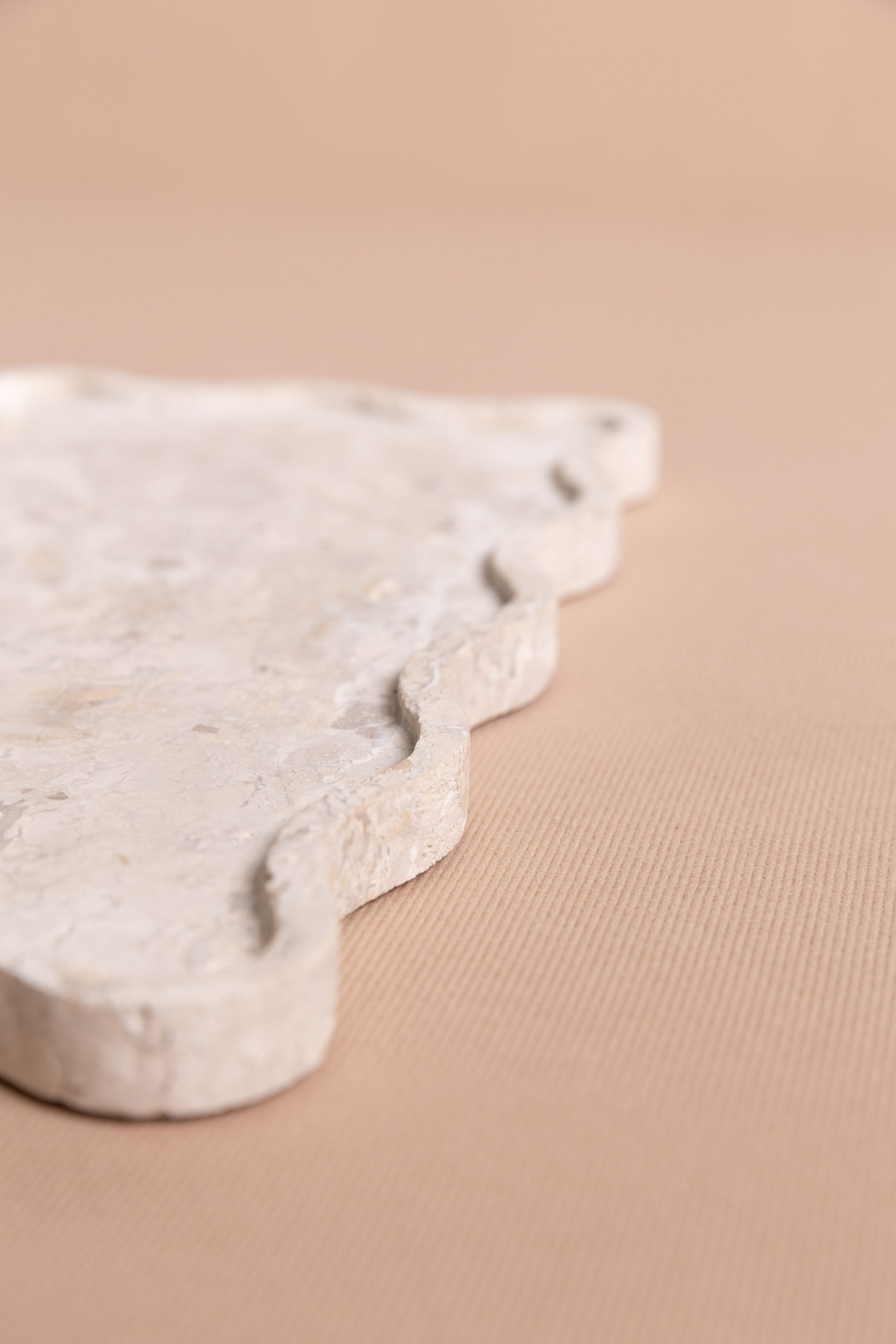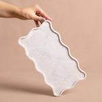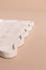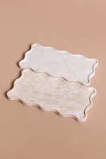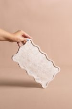 A bandeja Mossa pode ser utilizada em aparadores, valorizando composições com velas, livros e pequenos objetos, ou na mesa posta, como base elegante para servir e decorar. No quarto, funciona como apoio para perfumes, joias e adornos, trazendo sofisticação e organização ao ambiente. Suas bordas onduladas acrescentam movimento e delicadeza ao design, transformando a peça em um elemento versátil e escultural em pedra.