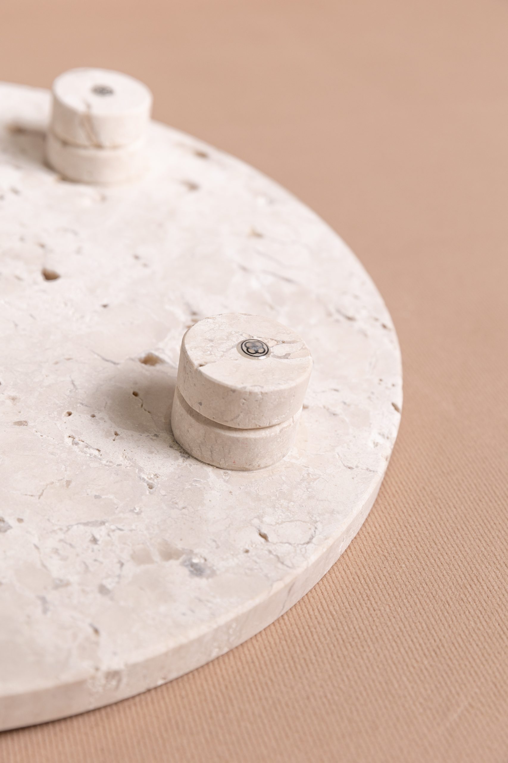 Disponível nos mármores Travertino Nacional e Calacata, Ello carrega a essência da pedra em sua expressão mais refinada e atemporal.
