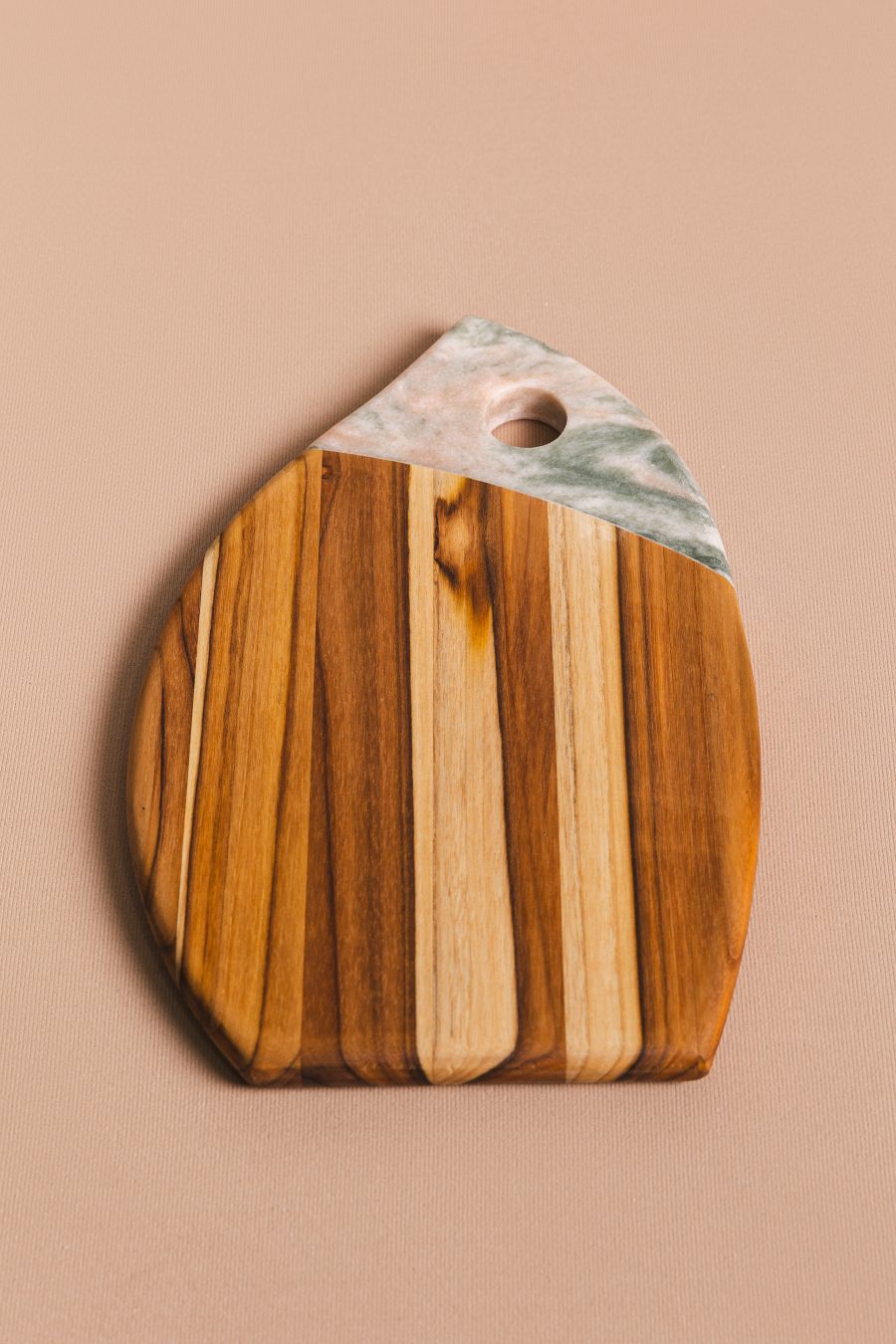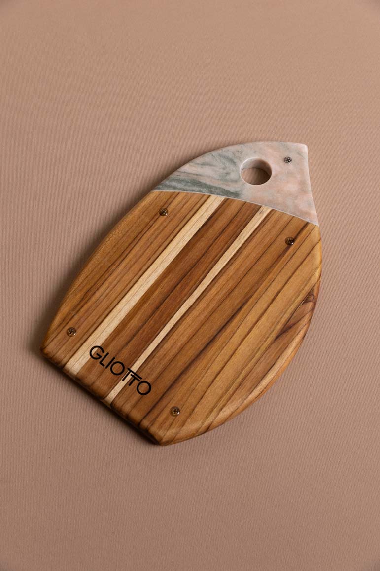 A bandeja Encanto pode ser utilizada como apoio decorativo para velas, castiçais e pequenos objetos em aparadores. Na mesa posta, pode servir bebidas, petiscos ou frutas com elegância. Sua combinação de madeira e pedra convida à criatividade.