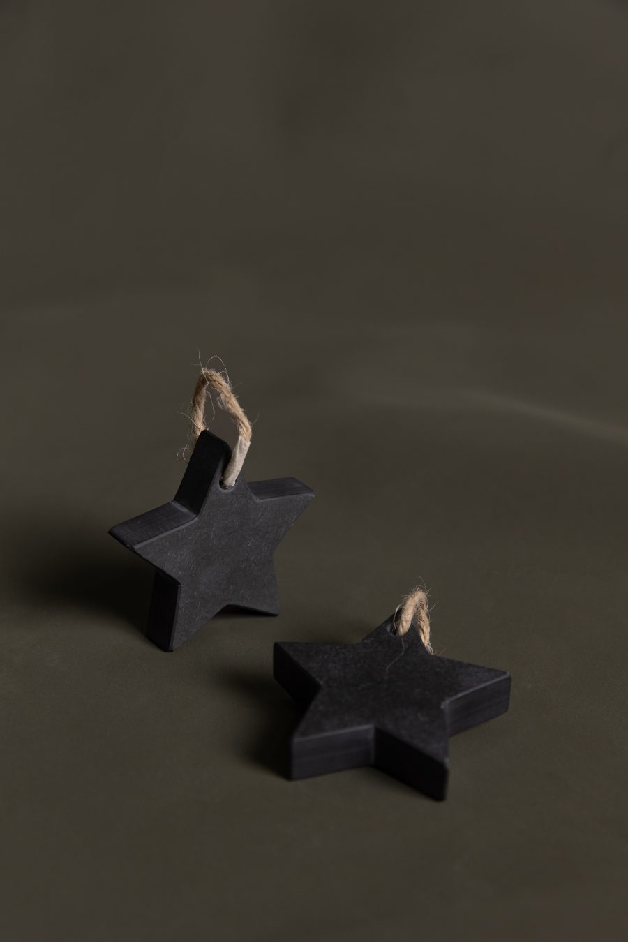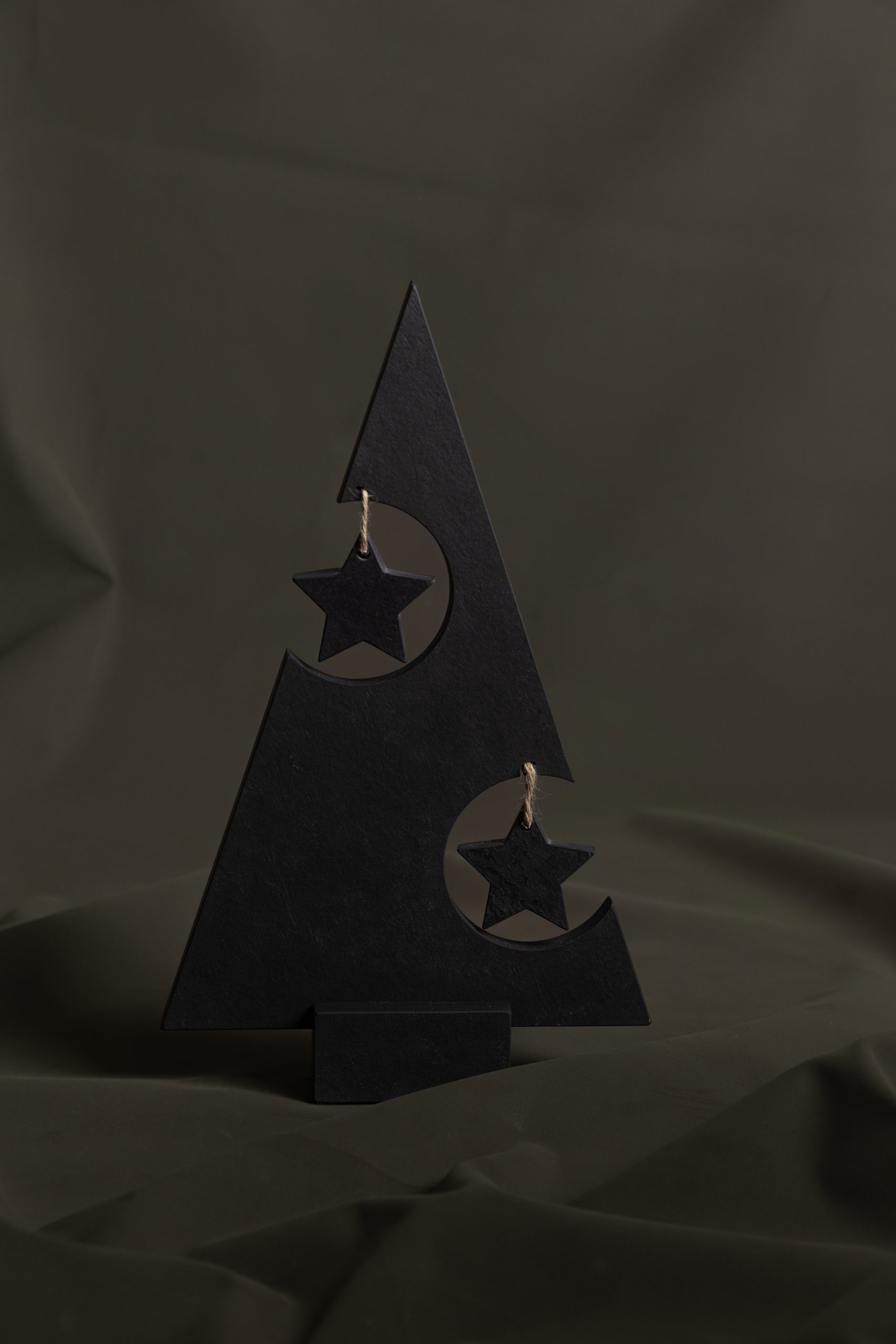 Pinea é uma peça decorativa que transforma o pinheiro em um elemento de design elegante em ardósia. Suas duas estrelas, cuidadosamente posicionadas, simbolizam luz e orientação, conferindo presença e sofisticação a qualquer ambiente.